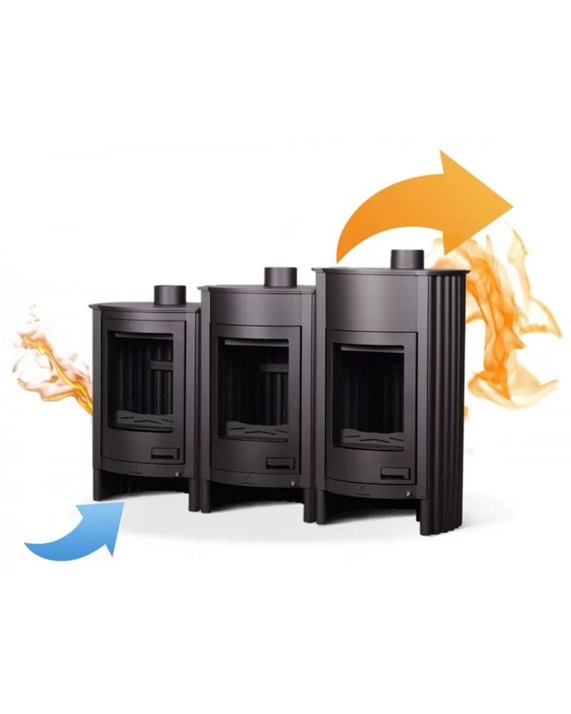 • Tento princip vytápění zajišťuje rovnoměrné rozdělení teplého vzduchu nejen po místnosti, kde kamna stojí, ale i také do dalších místností.