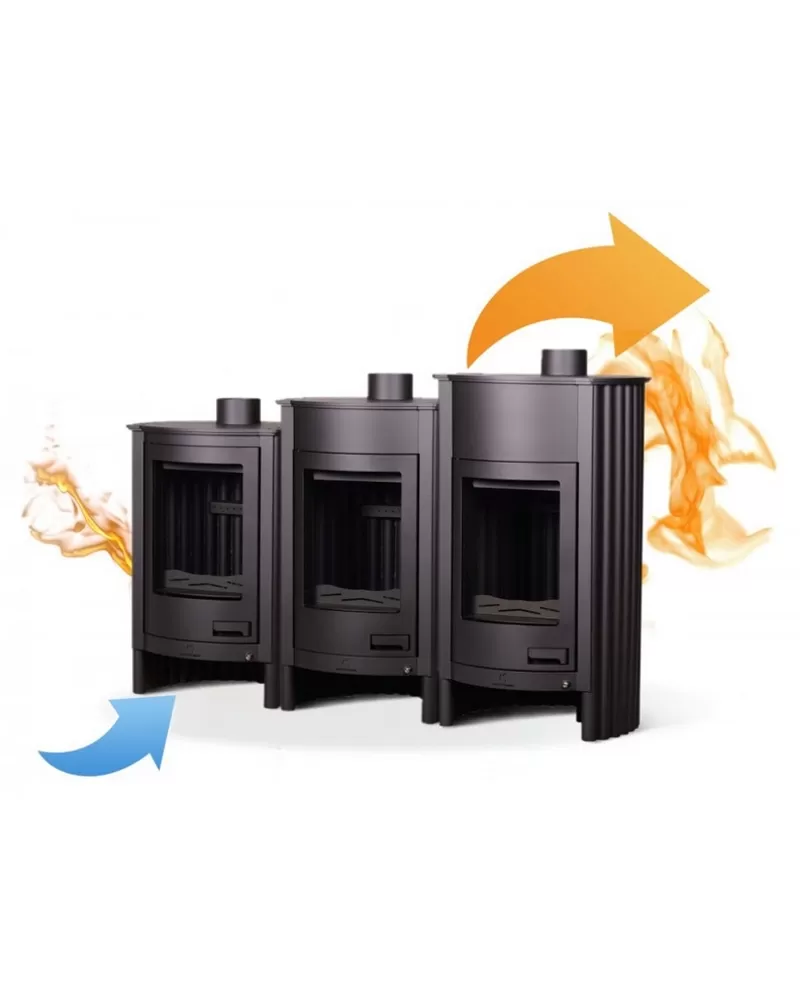 • Tento princip vytápění zajišťuje rovnoměrné rozdělení teplého vzduchu nejen po místnosti, kde kamna stojí, ale i také do dalších místností.