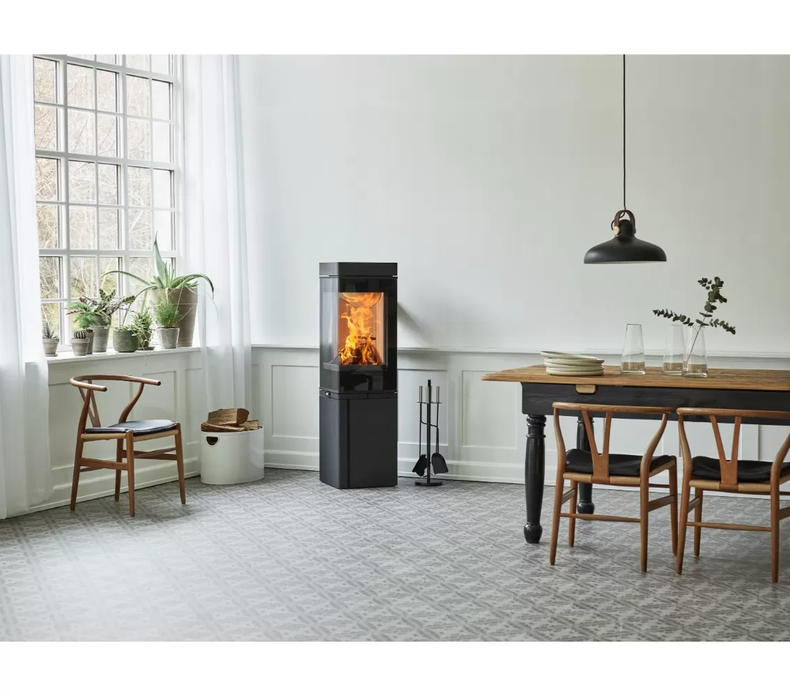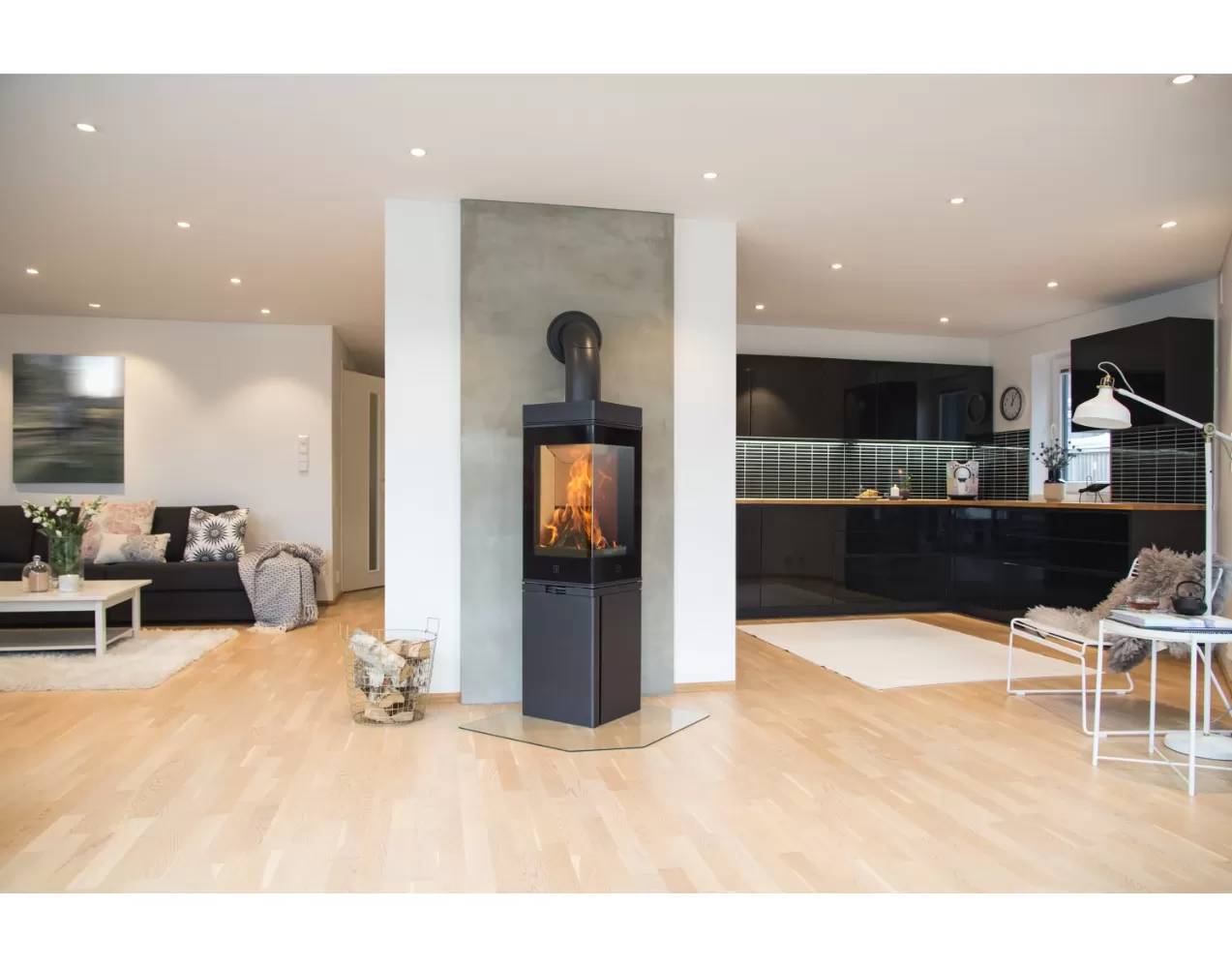 Krbová kamna s podstavcem a dvířky SCAN 80-2 černý lak Dvouplášťová konvekční ocelová kamna v elegantním hranatém provedení s rohovým prosklením… Celý popis