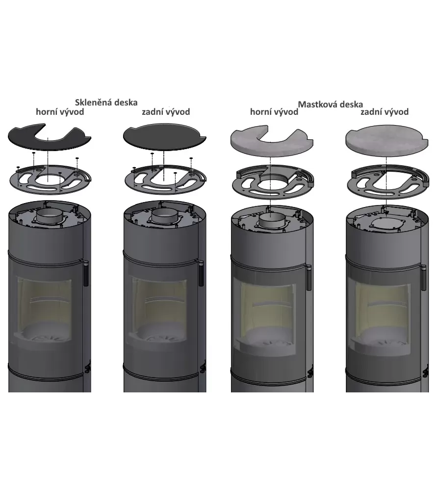 Dvouplášťová konvekční ocelová kamna s velkými celoskleněnými dvířky.