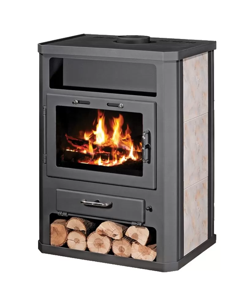 • Kamna vás uchvátí svým luxusním provedením a většími skleněnými dvířky, odolávající teplotám do 850 C°!, které zaručují nádherný zážitek z pohledu na plápolající oheň. Pod prosklenou částí kamen najdete prostor určený pro skladování dřeva, či dřevěných briket.