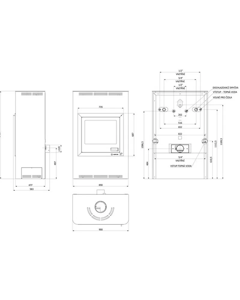 • Bez šamotová technologie - díky absenci šamotové vyzdívky dochází k plošnější předávce tepla do výměníku a zvýšení efektivity ohřevu vody.