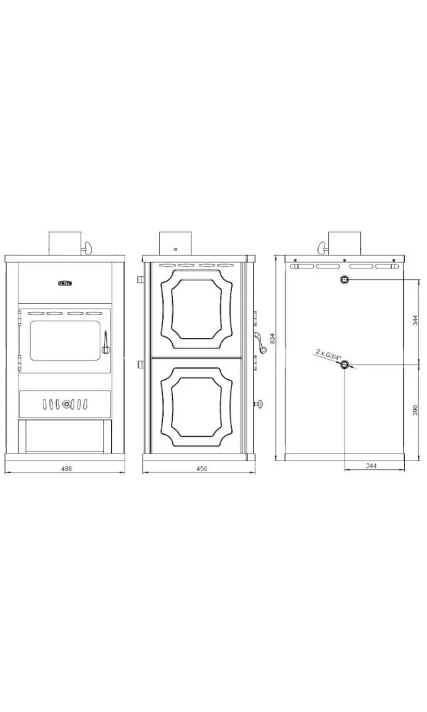 Krbová kamna s vodním výměníkem a litinovou plotnou Prity S1 W10