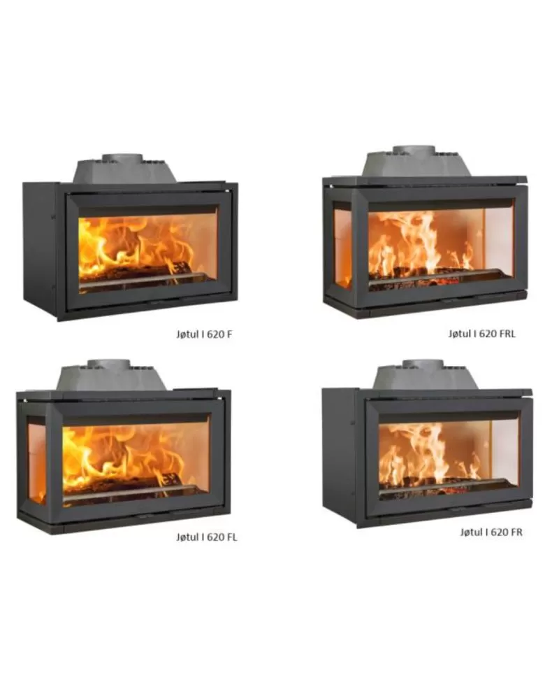 Kazetová krbová vložka černý lak, přední a levé boční prosklení JOTUL I 620 FL nabízí překrásný panoramatický výhled na oheň a ideální rozměry, které naprosté většině běžných krbů padnou jako ulité.