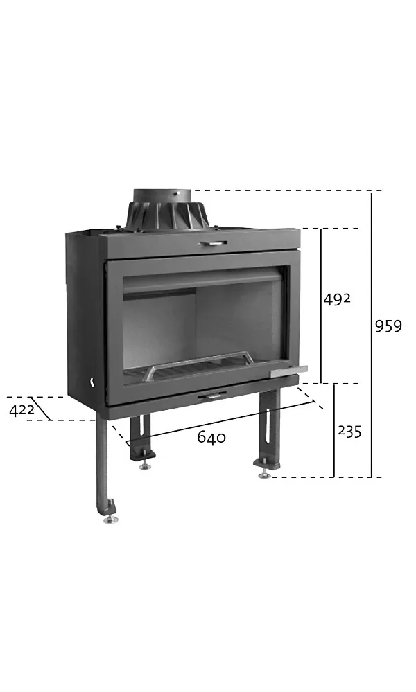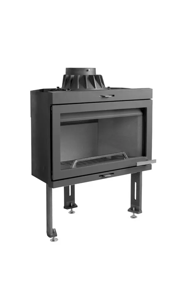 Středně velká krbová vložka s dělenými dvířky, které se dají vyklopit do stran.