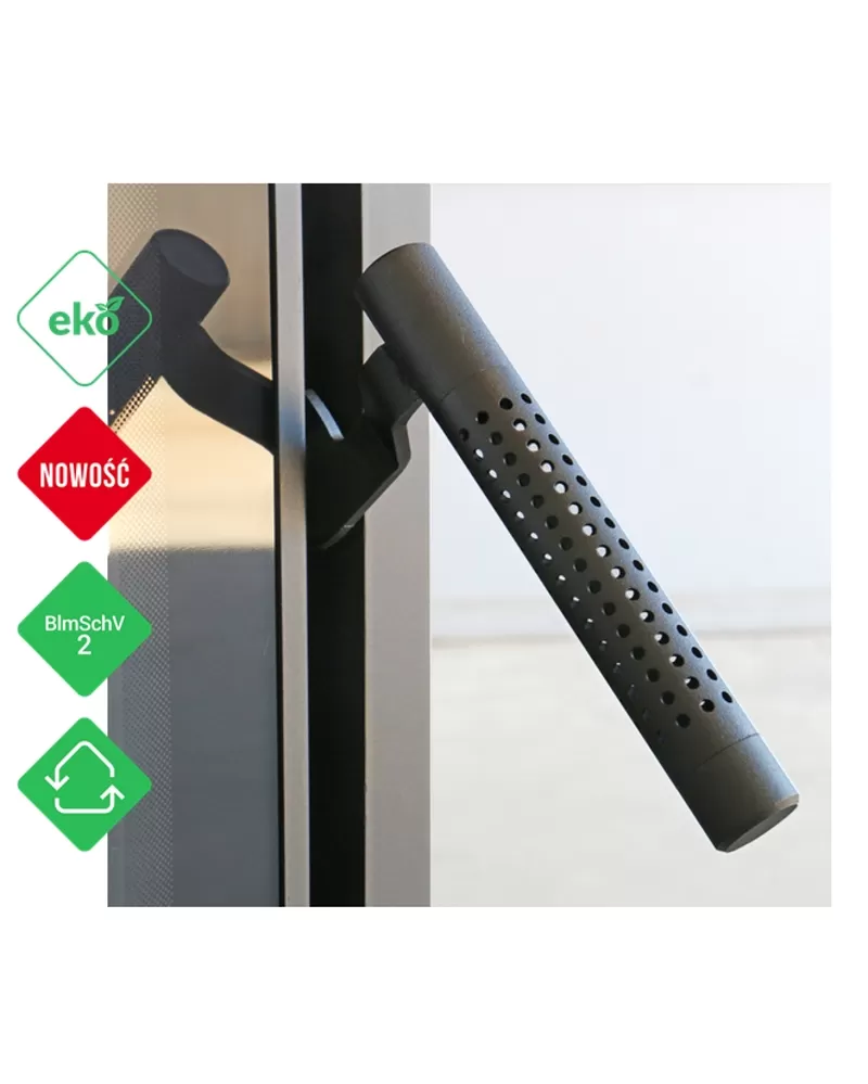 • Topeniště je s roštem a vyjímatelným popelníkem, jako hrdlo kouřovodu je otočná litinová kopule (stavitelná v rozsahu 0-360°, je možné ji nahradit adaptérem na teplovodní výměník či akumulační kroužky), sklo dvířek topeniště je designové, s černým lemem, zakrývajícím profil dvířek