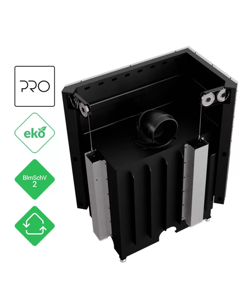• Vložka je vybavena vestavěným přívodem externího vzduchu s regulační klapkou, dekorativním sklem s černým lemováním, na přání může být za příplatek vybavena pružinou dvířek (mimo model Gilotina)