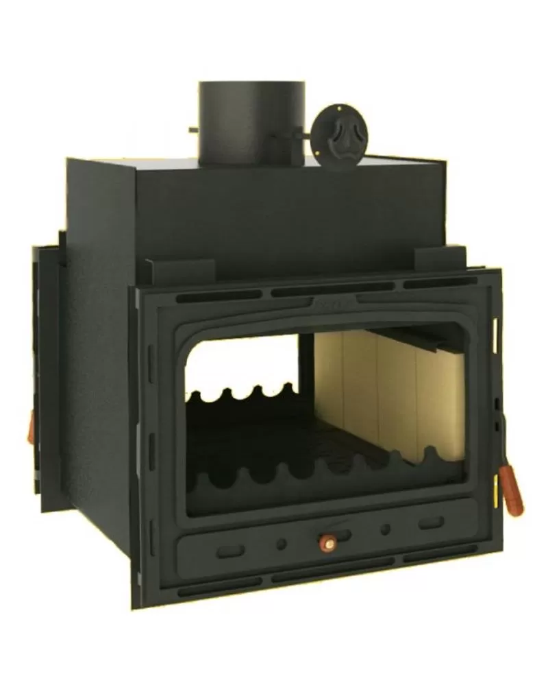 Krbová vložka Prity 2C Plech o síle 2-5 mm, která je lakována černou žáruvzdornou barvou. Litinové roštové topeniště. Splňuje EN 13229. Celý popis