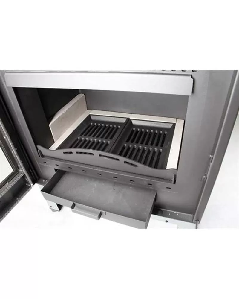 • Topeniště je ocelové, vyložené šamotovými tvarovkami, které zajišťují