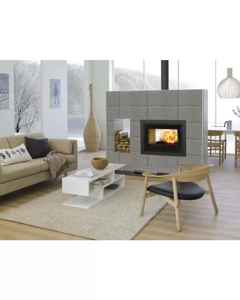 • Průhledná vložka zvlášť vynikne při zabudování ve volném prostoru, např. mezi jídelnou a obývacím pokojem,kdy je pohled do ohně z obou místností