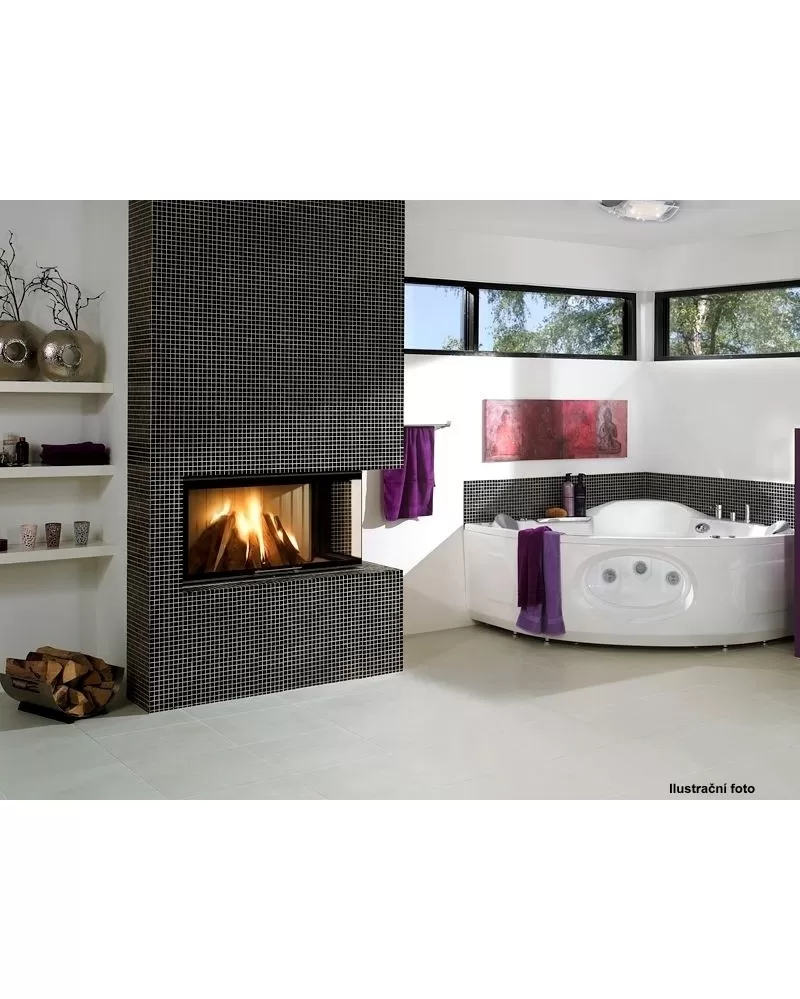 • Akumulační vystýlka ohniště - pro správnou funkci krbové vložky a pro zachování čistého hoření je velmi důležitá teplota v topeništi. Díky vloženým šamotům, které se nahřejí, je v krbových vložkách Spartherm vysoká spalovací teplota. Hoření tak vypadá mimořádně krásně a čistě