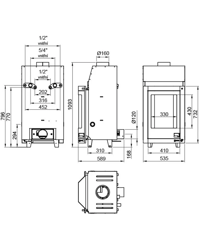 Rozměry topeniště (Š x V x H) 490x360x320 mm