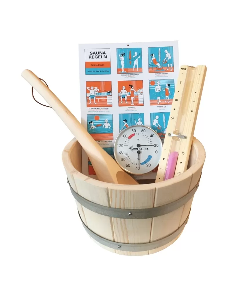 • Saunový balíček obsahuje veškeré základní příslušenství, které potřebujete pro dokonalé saunování