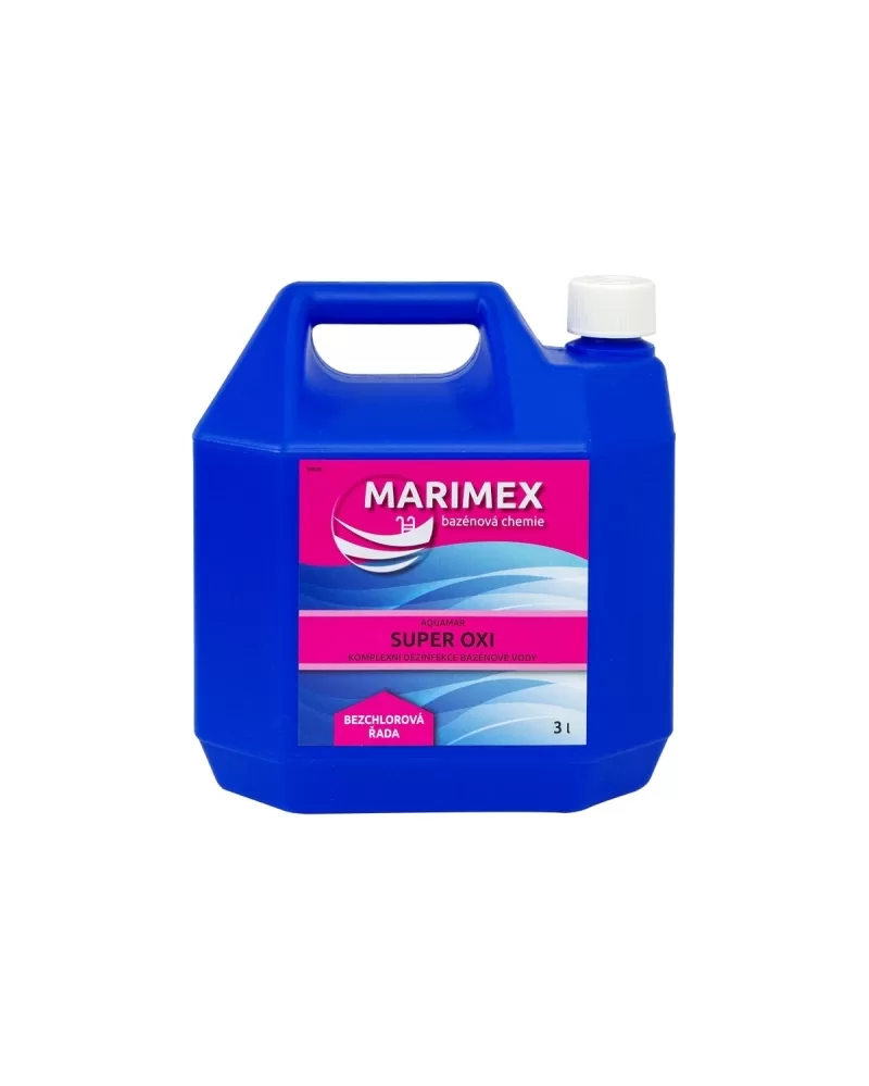 Marimex Super Oxi 3,0l Tekutý kyslíkový dezinfekční prostředek pro ošetření bazénů na bázi peroxidu vodíku a stříbra Slouží jako prostředek… Celý popis