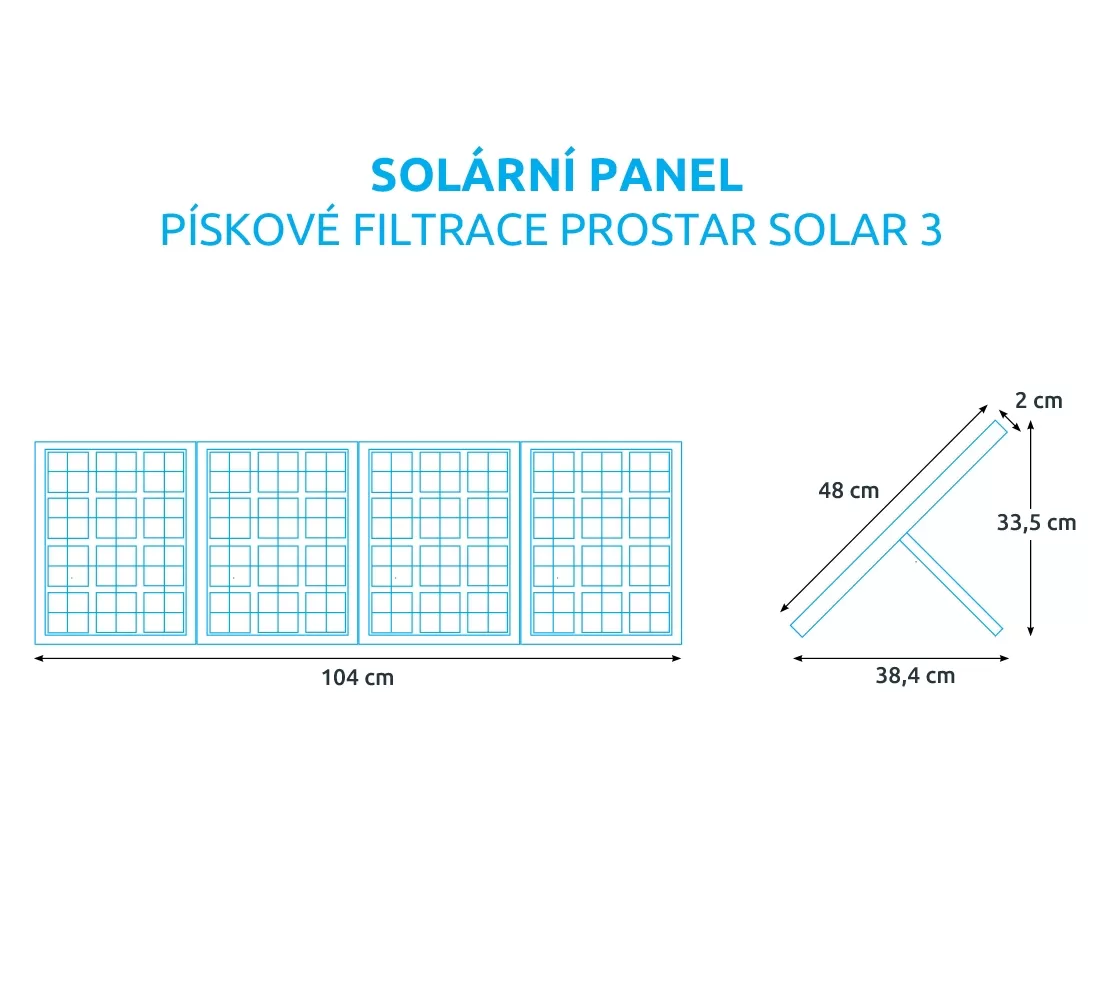 Filtrační systém bazénové filtrace ProStar Solar 3 se skládá z filtrační nádoby o průměru 290 mm, do které se vejde 400 g filtrační náplně Marimex Balls. Filtrace je vybavena skládacím solárním panelem o výkon 80Wp, motorem čerpadla o příkonu 40W. Dále má ve výbavě super tiché čerpadlo (35 dB). Ve výbavě je i transformátor pro možné připojení do zásuvky. Filtrace má klasické připojení na hadice 32 mm a je vhodná pro bazény do 19 m3. Průtok vody je 3,5 m3/hod.