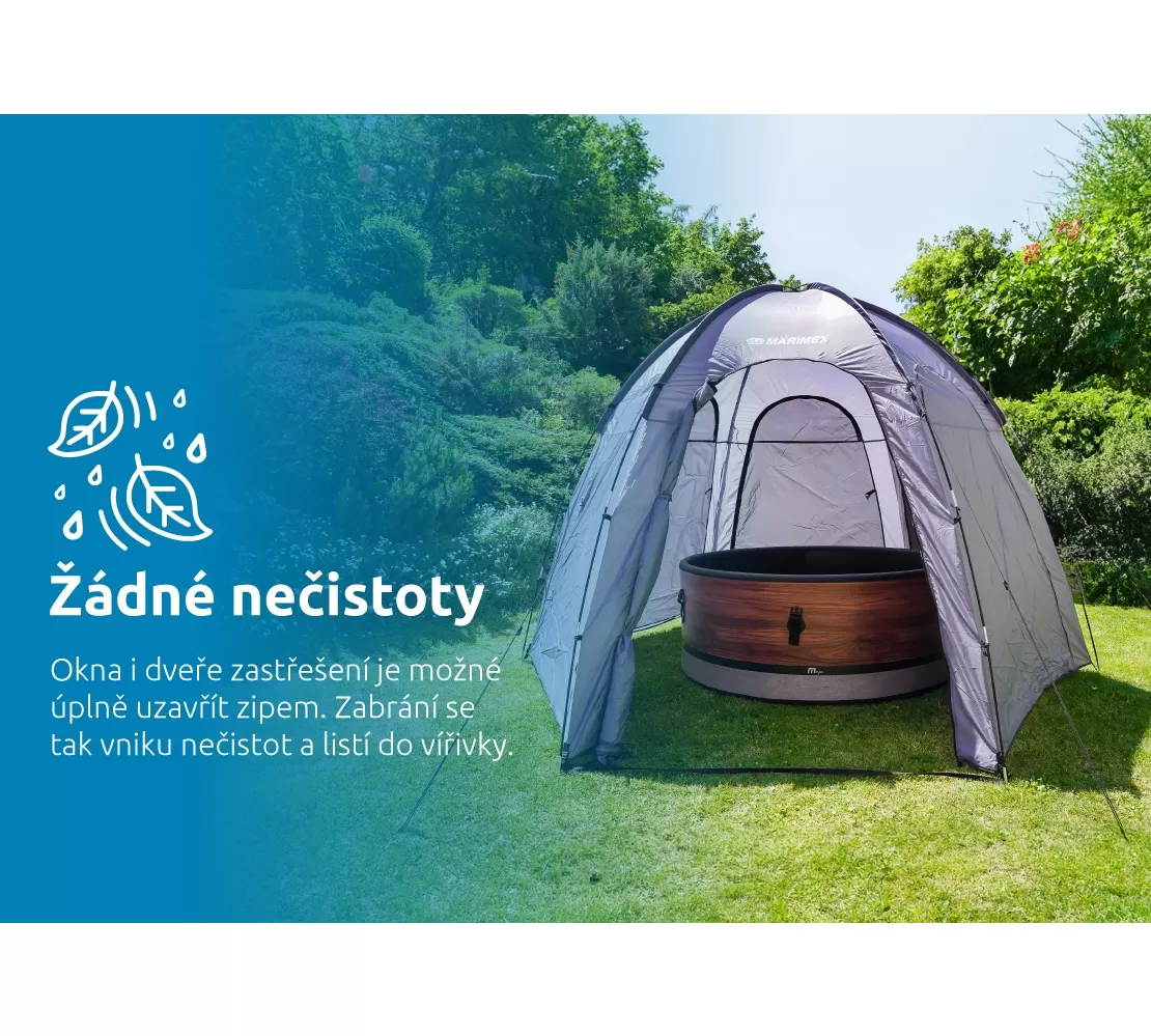 Zastřešení pro vířivky nabízí maximální ochranu před sluncem a mírným větrem. Všech 6 stran stanu lze zcela uzavřít nebo ponechat moskytiéru pro ventilaci a soukromí.
