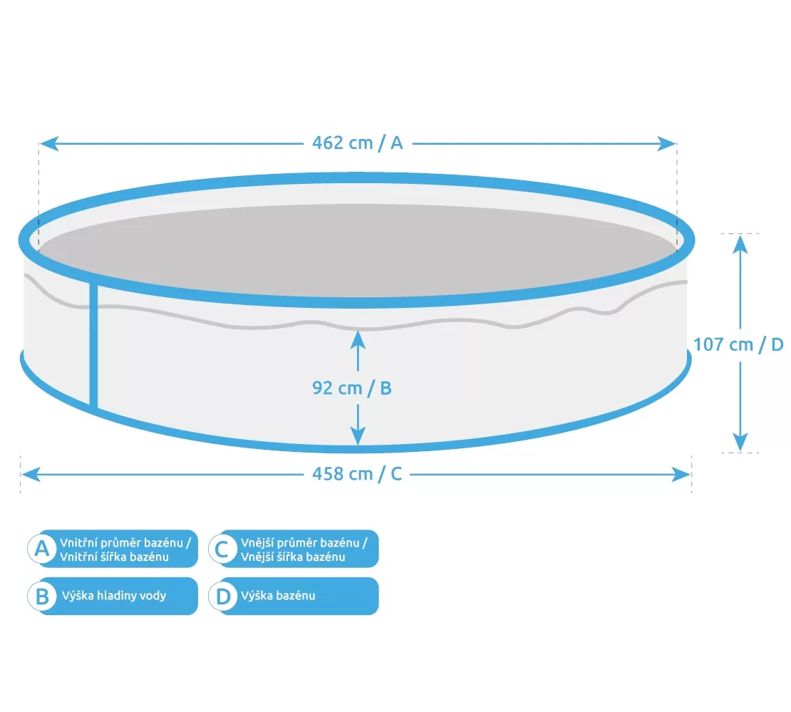 | Rozměry bazénu | 4,57 x 1,07 x 0,92 m |