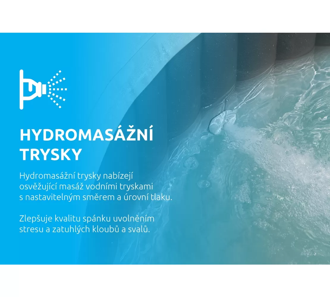 • Trysky: 4 hydromasážní trysky + 120 vzduchových trysek