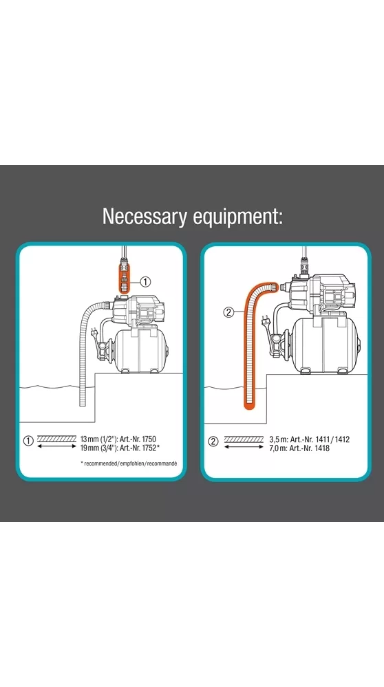 • Díky přídavnému výstupu s dvojitým připojením G1" je použití domácí vodárny 3700/4 ještě všestrannější, protože můžete připojit vysoce kvalitní výrobky Original GARDENA System a příslušenství