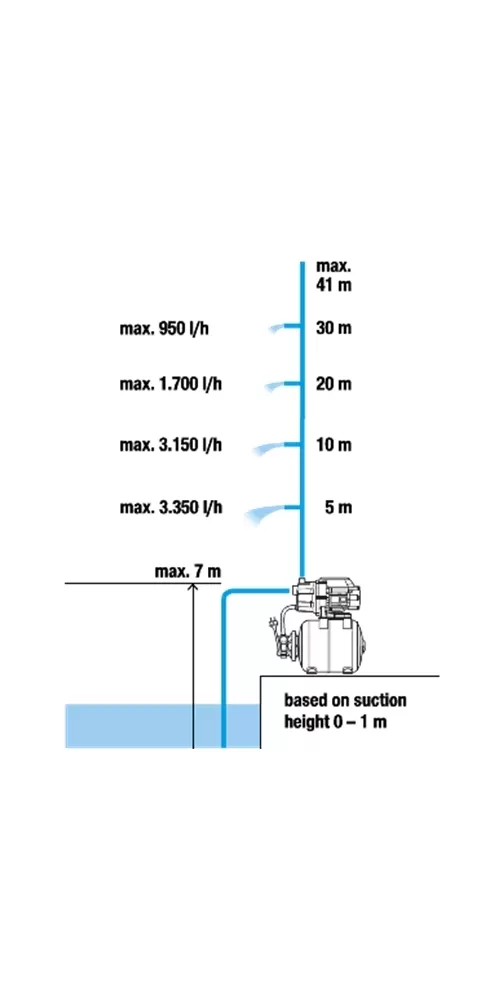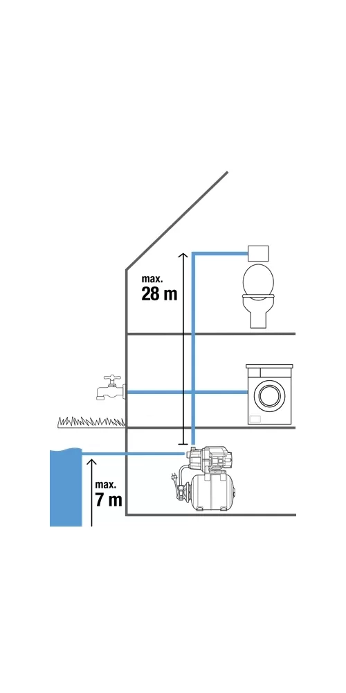 • Domácí vodárna 3700/4 poskytuje působivý výkon 4,1 baru při 800 W a může čerpat max. 3 700 litrů vody za hodinu z hloubky až 7 metrů