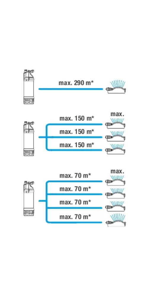 • Chcete spustit více zavlažovačů současně? Žádný problém: ponorné tlakové čerpadlo 6100/5 vám nabízí možnost používat až čtyři zavlažovače současně s výkonem až 6100 l/h a tlakem 4,7 baru
