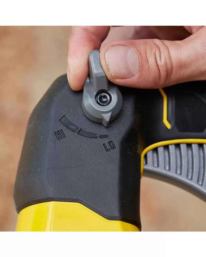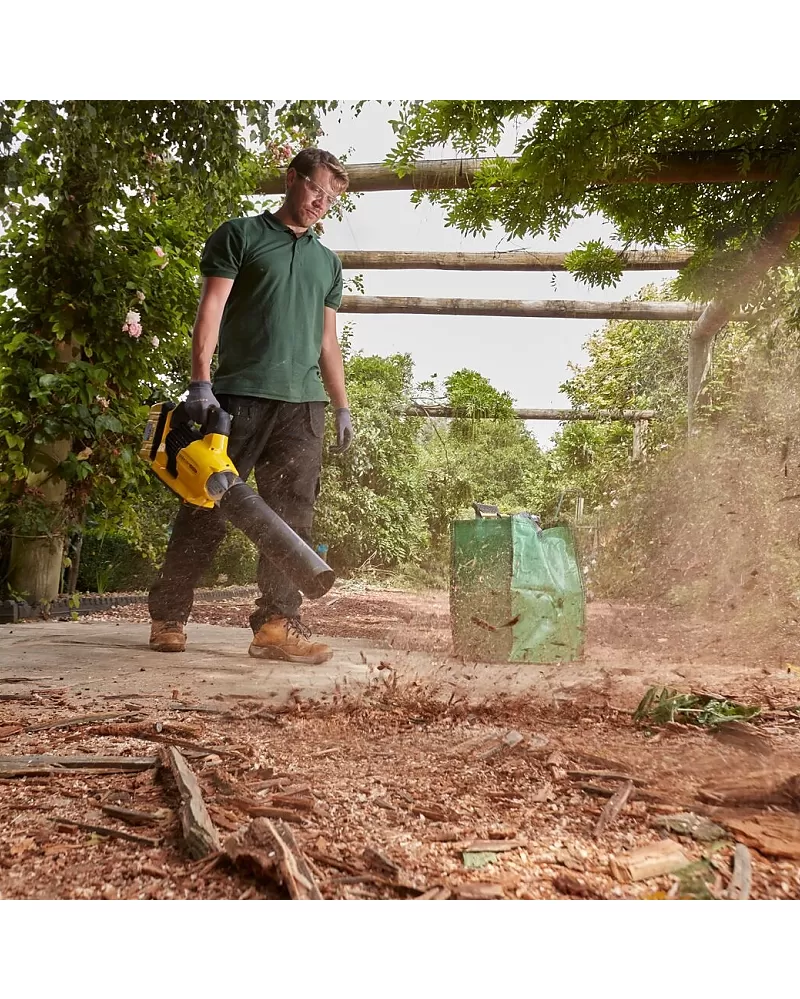 • Vysoce výkonný bezuhlíkový motor a konstrukce axiálního ventilátoru poskytují rychlost až 17 m3/min a 180 km/h pro rychlé a efektivní odklízení zahradního odpadu