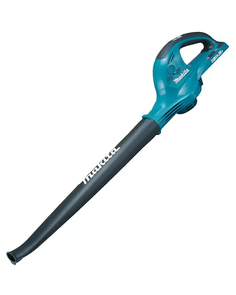 Výkonný akumulátorový fúkač napájaný dvomi 18V batériami bez batérií Makita DUB361Z s možnosťou nastavenia dvoch rýchlostí prúdenia vzduchu.