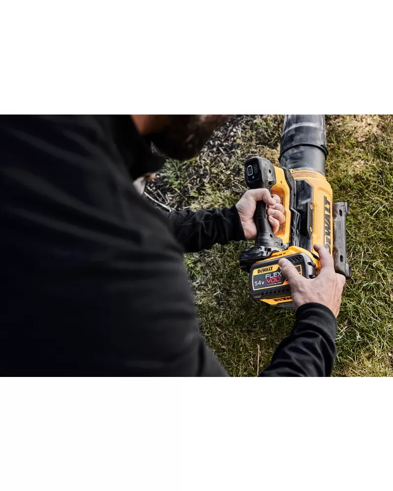 Axiální fukar DEWALT 54 V XR FLEXVOLT zvládne zadaný úkol díky objemu vzduchu až 21,5 m3/min a rychlosti 258 km/hod. Perfektní pomocník pro údržbáře, profesionální zahradníky i zahrádkáře a je vybaven funkcemi, které usnadňují a zefektivňují práci. Tento akumulátorový ruční axiální fukar je vybaven vysoce účinným bezkartáčovým motorem, který zajišťuje tichý provoz a vynikající poměr výkonu a hmotnosti, a spouštěčem s proměnlivou rychlostí a aretací rychlosti pro regulaci výkonu fukaru. Jeho vyvážené provedení a optimalizované ovládání usnadňují používání pravákům i levákům. Součást akumulátorového systému 54V XR FLEXVOLT, která může napájet jak vaše nářadí řady 54V XR, tak i vaše nářadí pracující s napětím 18 V, přičemž k jejímu nabíjení můžete používat svoji stávající 18V nabíječku. Tato sortimentní položka se prodává jako základní jednotka, akumulátory a nabíječka se prodávají samostatně.