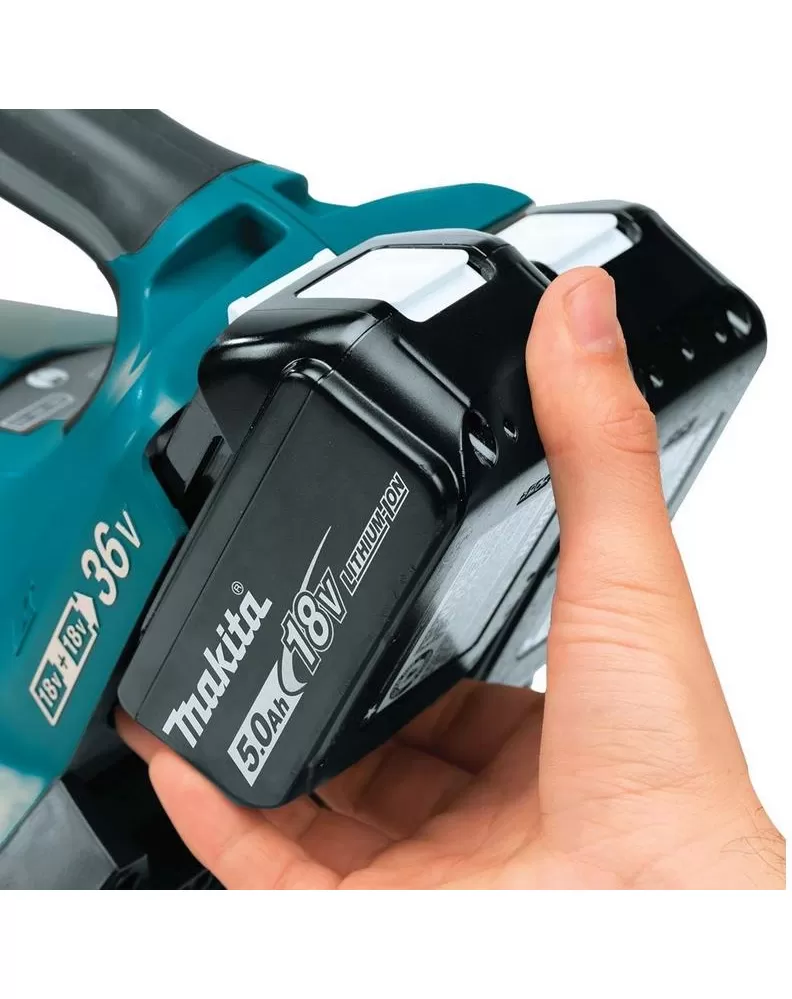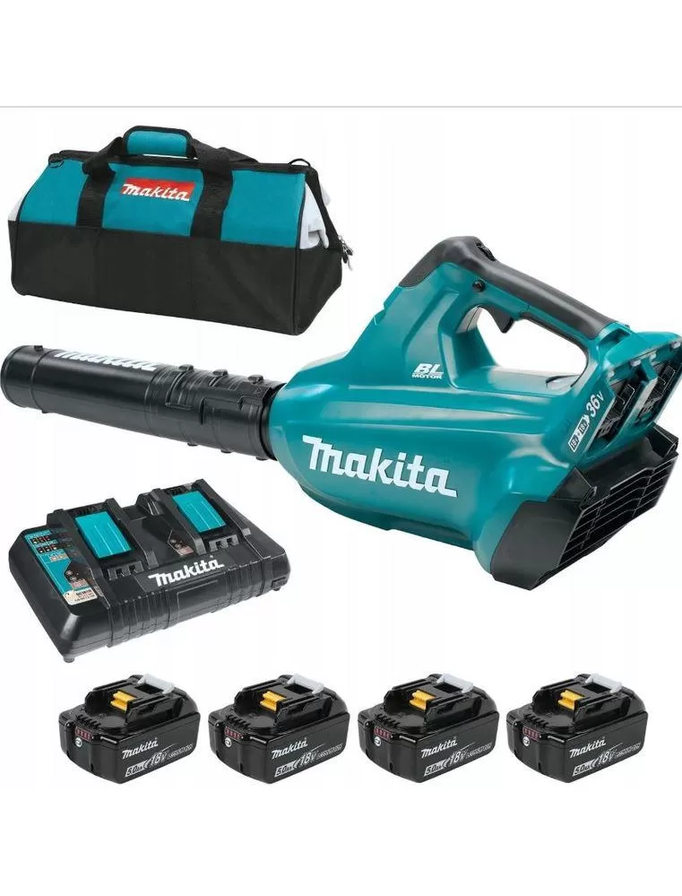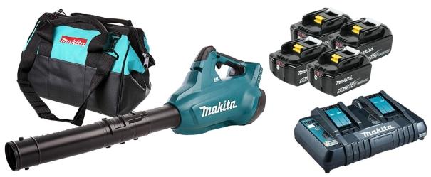 Součástí dodávky je praktická taška Makita, nabíječka a 4 akumulátory 5,0 Ah, které jsou kompatibilní se všemi 18V stroji Makita.