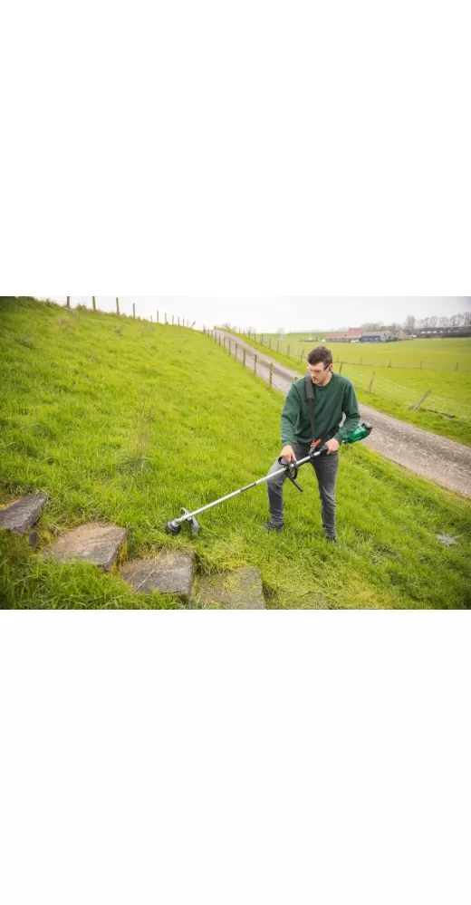 • 18V bezuhlíkový křovinořez se šířkou záběru 230-310 mm a kruhovým držadlem