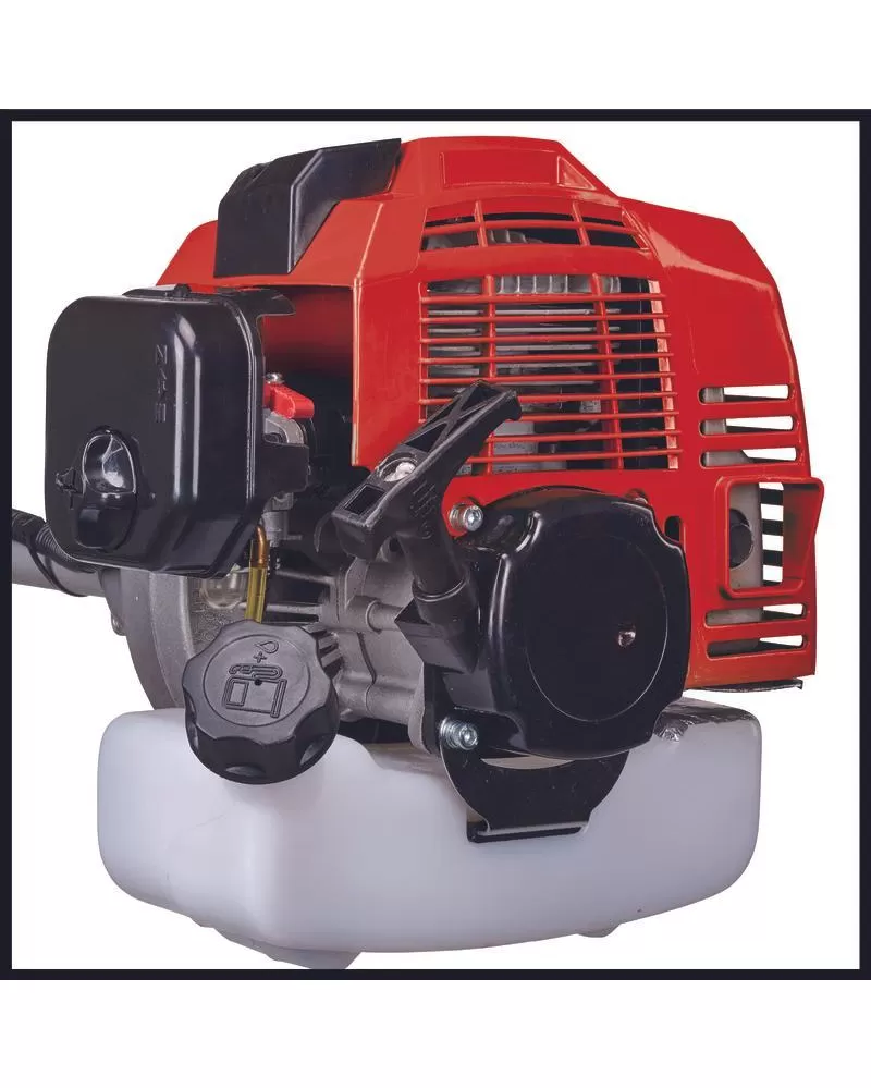 • S jednoduchostí, praktičností a flexibilitou je tento benzínový multifunkční přístroj cenově příznivou alternativou pro jednotlivé stroje. Je poháněn vysoce kvalitním, nízko vibračním dvoutaktním motorem o síle 1,5 kW a s digitálním zapalováním, který zajistí stabilní a bezpečný chod stroje. Veškeré ovládací prvky jsou příhodně na hliníkové rukojeti, díky níž a přídavnému popruhu je práce snadná a bez namáhy. Multifunkční přístroj je dodáván s třízubým nožem, cívkou s podavačem, kvalitní lištou a řetězem OREGON a laserem řezanými a diamantem broušenými čepelemi. Mazání řetězu je automatické. Sečná hlava může být snadno nakloněna. Madlo může být složeno pro snadnou přepravu nebo uskladnění.