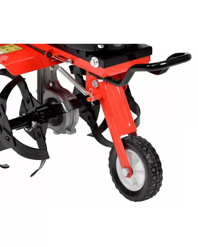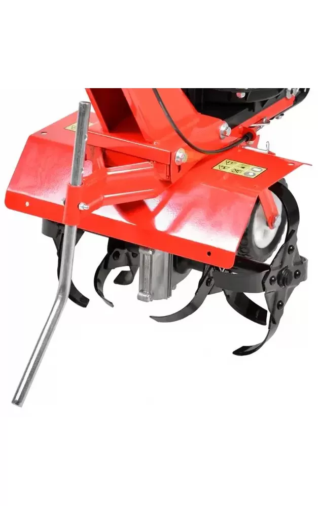 Kultivátor je vybaven čtyřmi sadami kvalitních ocelových kultivačních nožů a velkým ochranným krytem proti odletujícímu materiálu. Pracovní záběr stroje je 36cm.