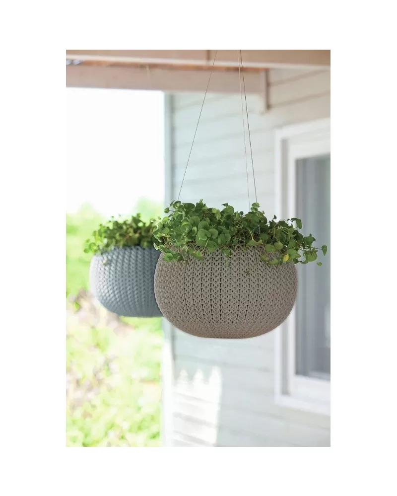 • Závěsný nízkoúdržbový květináč Keter Cozy M napodobuje vzor pletení a tak svým designem silně připomíná přírodní ratanovou vazbu.