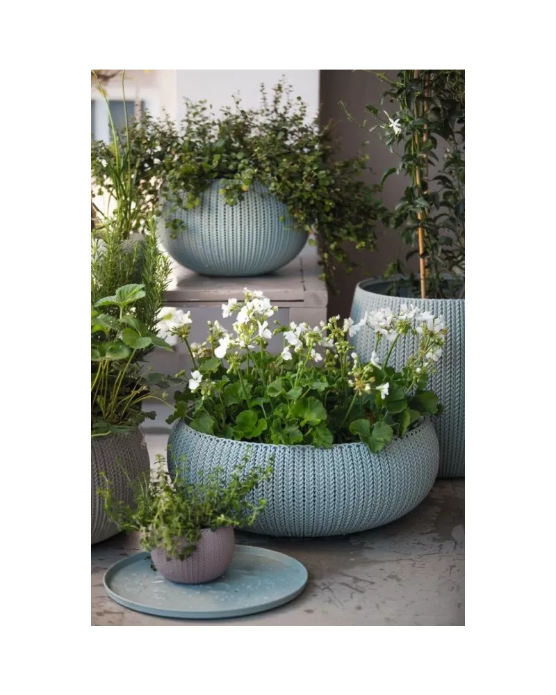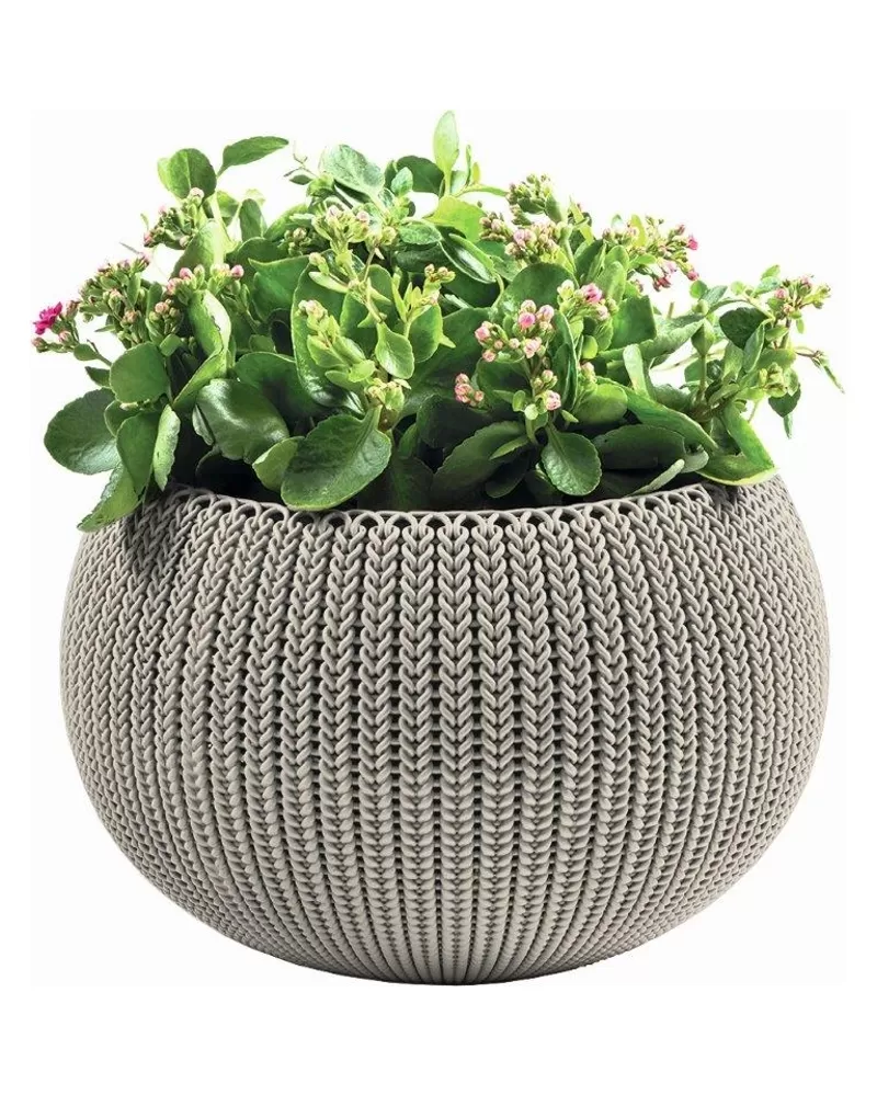 • Květináč je složený ze 2 částí – vnitřní úsek pro výsadbu je vložený do knitového obalu.