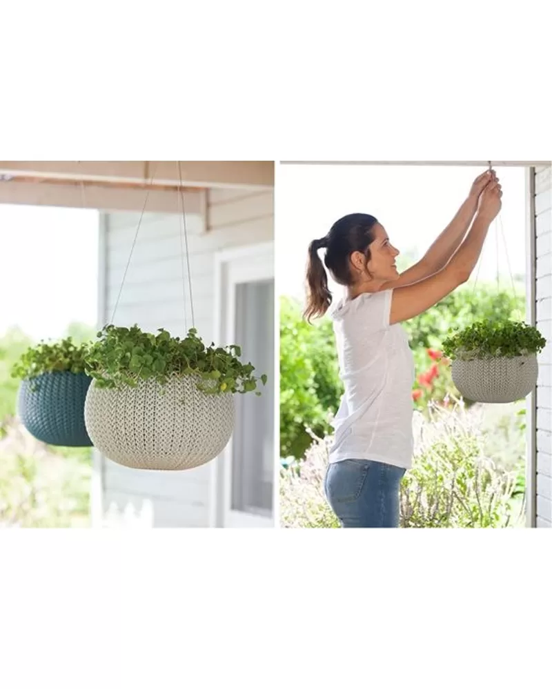 • Závesný kvetináč Keter Cozy S nenáročný na údržbu imituje vzor pletenia a svojim dizajnom tak silne pripomína tkanie z prírodného ratanu.