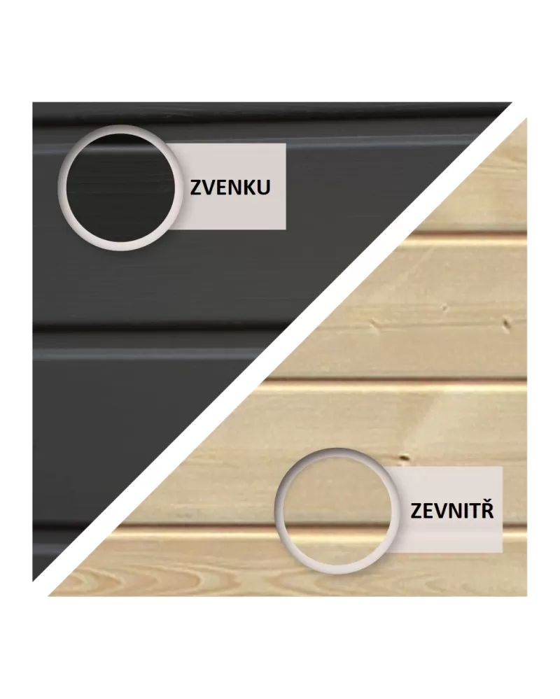 • Prírodnú verziu je potrebné pred použitím ošetriť vhodnou povrchovou úpravou na vonkajšie drevo (podľa vlastného výberu) - t.j. protiplesňovým náterom plus napr. škvrna.