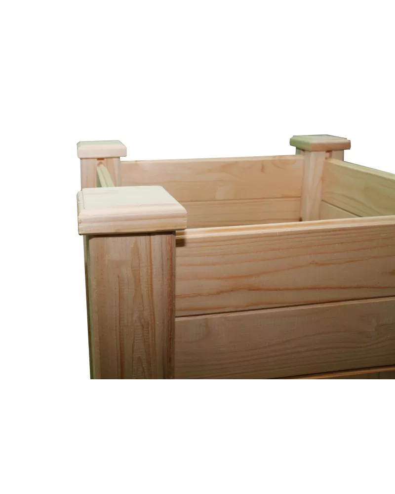 • Vyvýšený záhon je složen z dřevěných profilů síly 22 mm složených v systému pero / drážka.