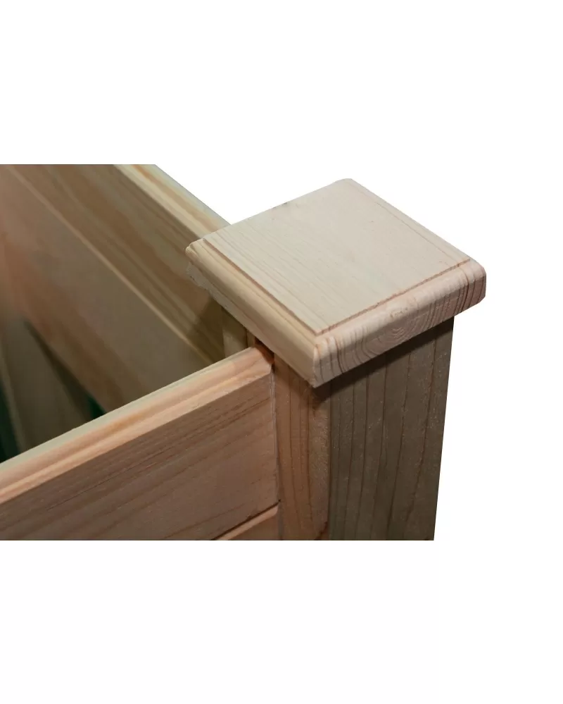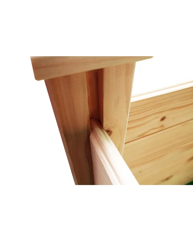 • Vyvýšený záhon je složen z dřevěných profilů síly 22 mm složených v systému pero / drážka.