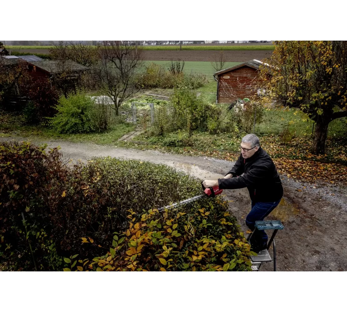• Bezpečnostní dvojitý spínač zabraňuje nechtěnému spuštění nůžek na živý plot a poskytuje dodatečnou ochranu rukou.