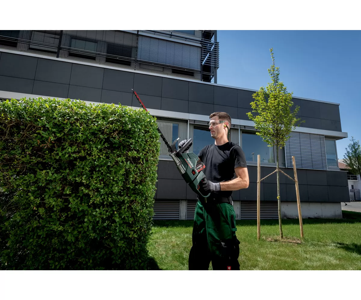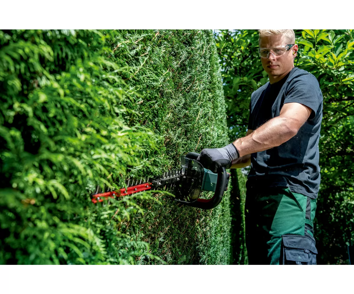 • Výkonné bezuhlíkové akumulátorové nůžky na živý plot s otočnou rukojetí pro pohodlné stříhání a prořezávání