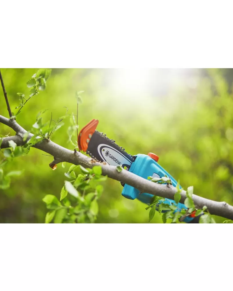 • Nyní již nemusíte na stromy šplhat: s akumulátorovou vyvětvovací pilkou GARDENA TCS 20/18V P4A můžete pracovat bezpečně ze země