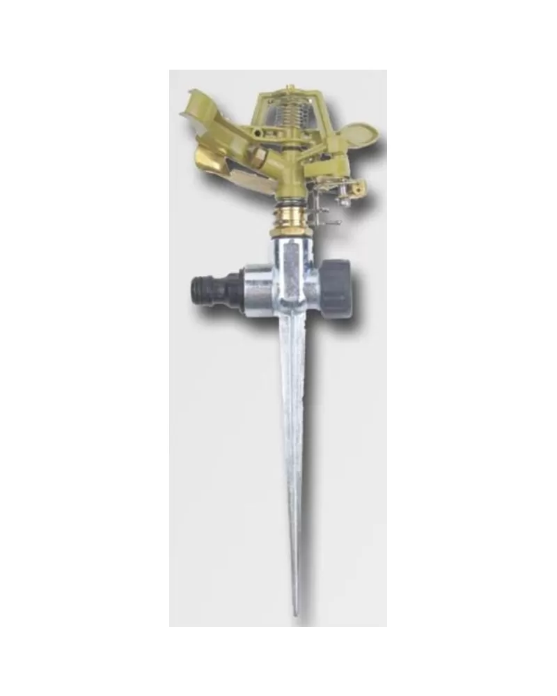 Celokovový kruhový zavlažovač s možností nastavení kruhového výseku. Pozinkovaný podstavec s připojením na vodu.