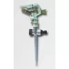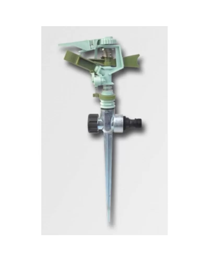 Plastový kruhový zavlažovač s možností nastavení kruhového výseku. Pozinkovaný podstavec s připojením na vodu.
