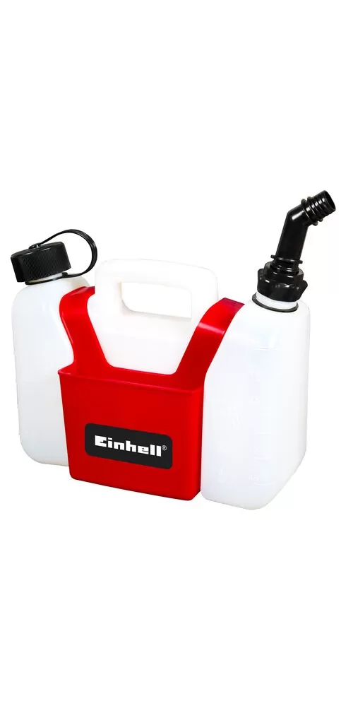 Kombinovaný kanister Einhell je praktickým doplnkom pre motorové píly. Pri rezaní dreva motorovou pílou stačí jeden dotyk a je zabezpečený prísun prevádzkových kvapalín. Kombinovaný kanister (1,25 l nádrž na olej, 3 l nádrž na benzín) je ideálnym pomocníkom pri plnení benzínových zariadení. Okrem dvoch kombinovaných kanistrov je integrovaná aj praktická priehradka na náradie. Aby sa predišlo nebezpečenstvu, skrutkovacie uzávery sú vybavené detskou poistkou. Plniaca tryska zaisťuje bezpečné plnenie motorom poháňaného zariadenia, takže pri tomto kroku nehrozí žiadne nebezpečenstvo pre životné prostredie. Nádoba je vyrobená z kvalitného, ​​húževnatého plastu a vďaka svojej robustnosti zvládne aj náročnú záťaž.