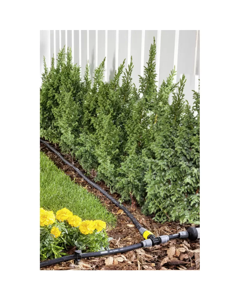 • Vysoce efektivní zavlažovací systém Kärcher Rain System® spojuje výhody mikroodkapávání a běžného zavlažování, pracuje pod tlakem až 4 bar a je vybaven 1/2"-hadicí s těsnícími manžetami pro kapénkovou závlahu a postřik.