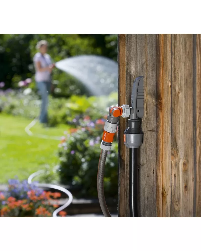 • Nadzemní vodní přípojku lze upevnit na stěnu, například ke kůlně, nebo ji lze umístit do volné půdy pomocí trnu