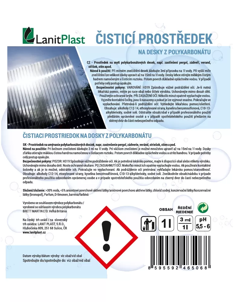 Čisticí prostředek LANITPLAST na desky z polykarbonátu