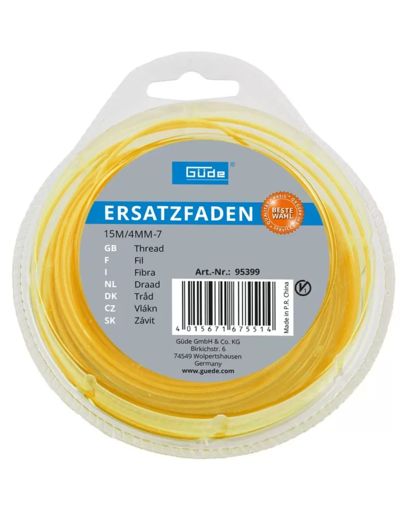 Náhradní struna 15m/4mm-7 Güde 95399 Náhradní struna k motorovému vyžínači WM 560 TRI (95395) Celý popis