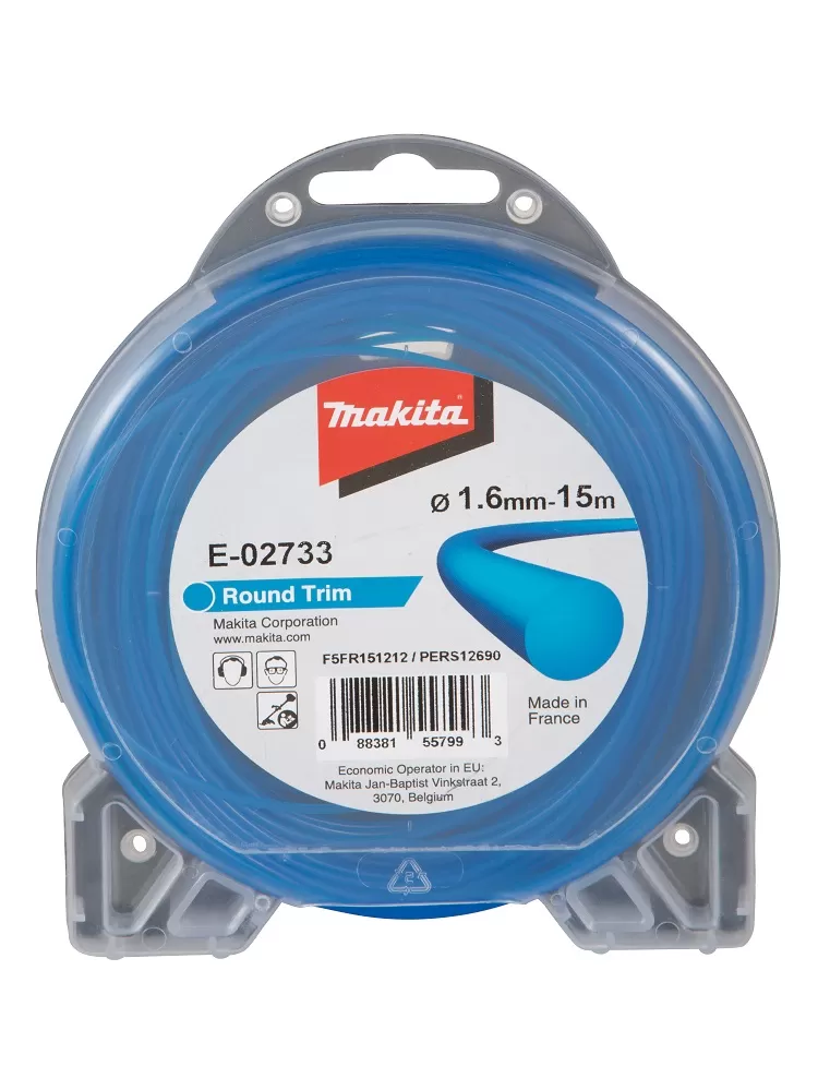 Struna nylonová 1,65mm, 15m, modrá, kulatá Makita E-02733 Kvalitní nylonová struna pro křovinořezy a strunové sekačky Celý popis