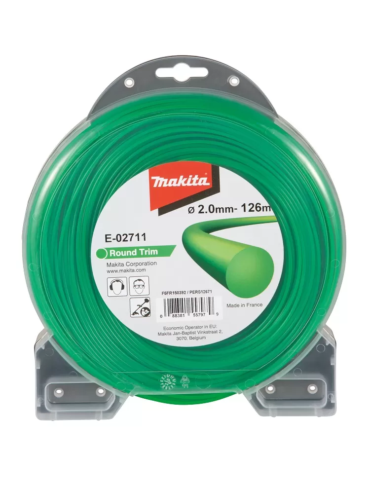 Struna nylonová 2,0mm, 126m, zelená, kulatá Makita E-02711 Kvalitní nylonová struna pro křovinořezy a strunové sekačky Celý popis